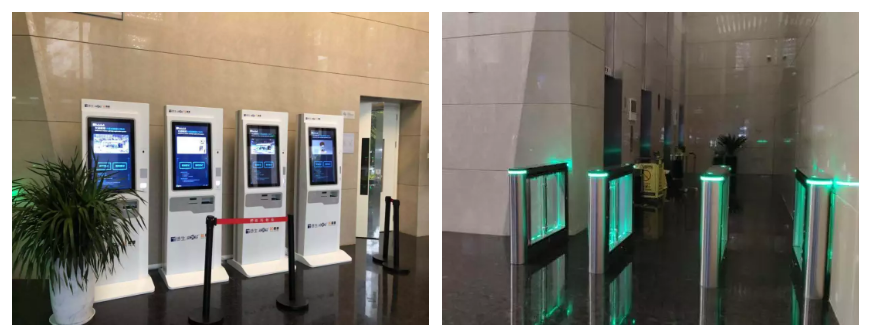 鹽田現(xiàn)代產(chǎn)業(yè)服務(wù)中心大堂,通過使用德生臺式訪客機與立式自助訪客機完成來訪登記,訪客自助通行門禁道閘,有效分流、縮短滯留時長,大大減輕前臺接待壓力。