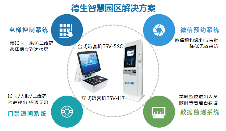 本套系統(tǒng)以訪客系統(tǒng)為基礎(chǔ),聯(lián)動門禁道閘系統(tǒng)、梯控系統(tǒng)、微信預(yù)約系統(tǒng)、出入數(shù)據(jù)監(jiān)測系統(tǒng)。