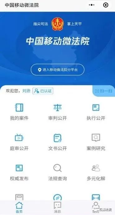 一、通過(guò)微信搜索“移動(dòng)微法院”小程序,進(jìn)入小程序后先完成律師身份實(shí)名認(rèn)證。