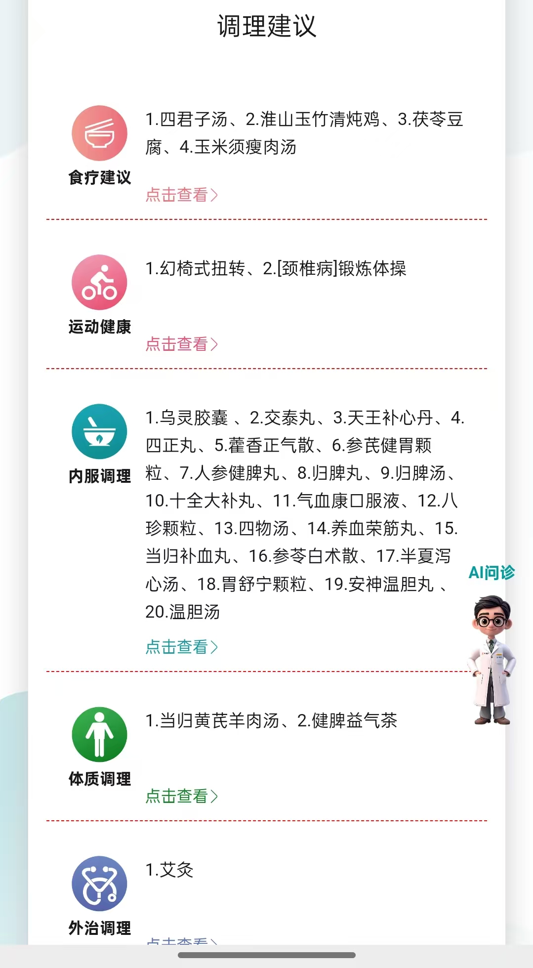 AI中醫(yī)成功架起了專業(yè)醫(yī)學(xué)與日常生活的橋梁。系統(tǒng)內(nèi)置的智能算法引擎,能夠?qū)?fù)雜的中醫(yī)辨證結(jié)論,轉(zhuǎn)化為任何人都能立即執(zhí)行的生活建議:√"肝郁氣滯"→"建議飲用玫瑰陳皮茶,每周3次瑜伽"√"脾胃虛弱"→"早餐增加小米粥,避免生冷食物"。