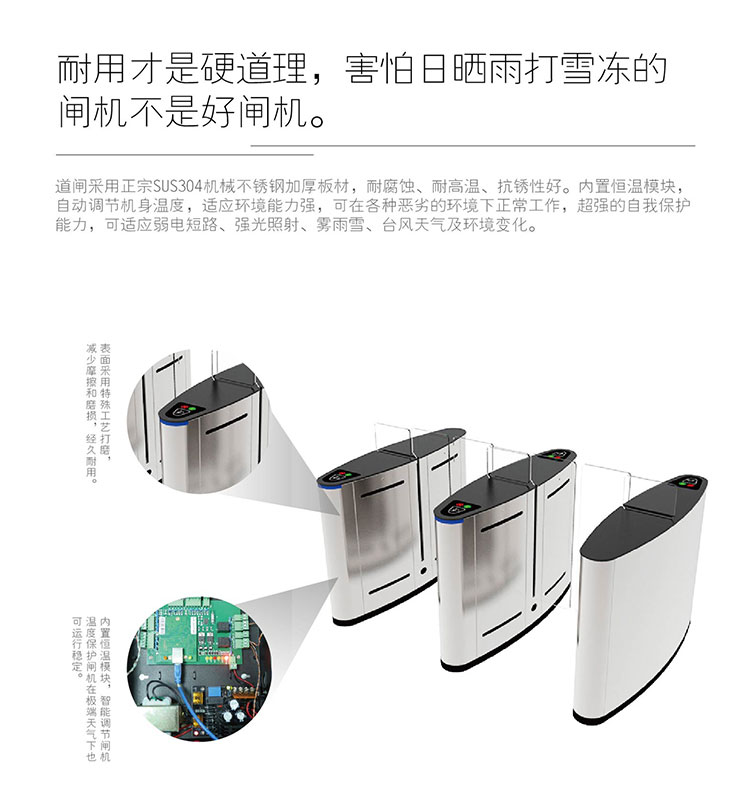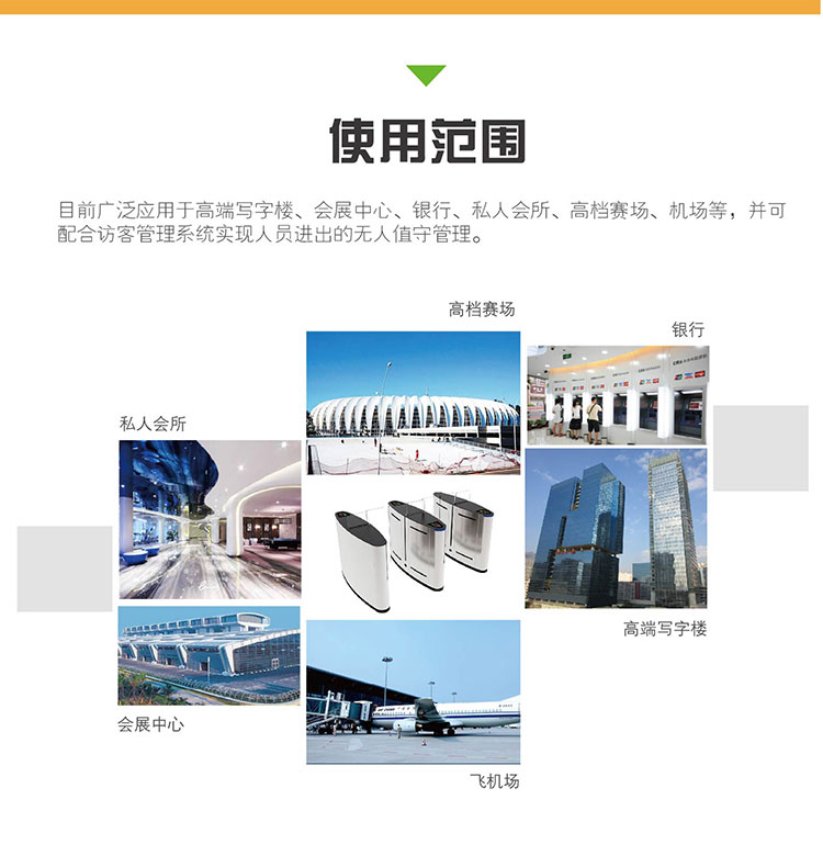 產(chǎn)品特點:防尾隨、防沖撞、遠程控制、自動復位、應用于字樓、會所、酒店、政府機關(guān)等場合